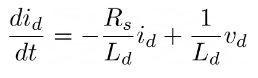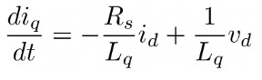 The DQ control loop is the innermost control loop of the FOC, it is designed to maintain the D & Q currents appropriate to generate the required torque and as such is formulated from the dynamic equations of the system. The dynamic equations of a PMSM are as follows: