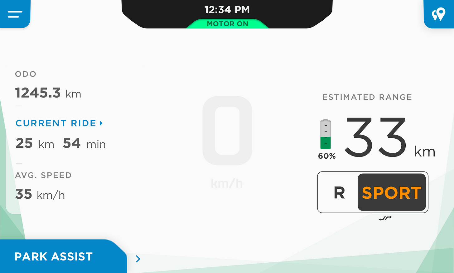 Every wonder why petrol two wheelers don’t have reverse functionality? The mechanism, mechanical or otherwise, for achieving rotation of the wheels in the other direction is bulky and expensive to implement this. Fortunately for us, our intelligent PMSM motor has an inbuilt mechanism of direction reversal with speed limitation functionality. But the park assist mode on our scooter presents a unique challenge — how to ensure minimum jerk to the rider while in reverse, yet ensure maximum torque required to climb out of a ditch in reverse? Food for thought.
